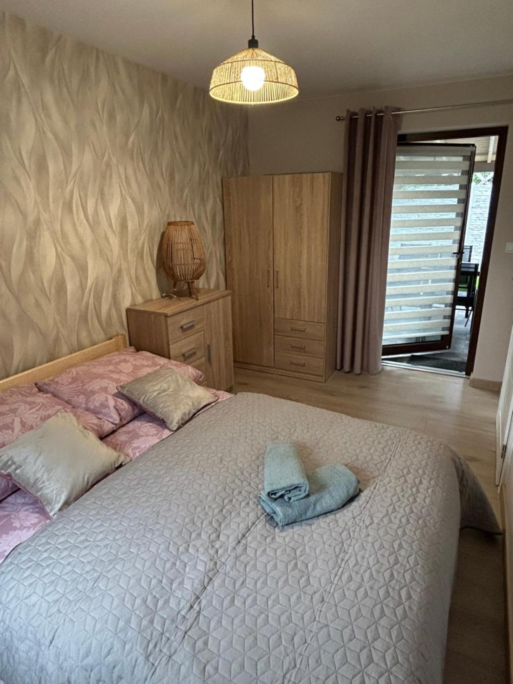 Dom z 3 sypialniami. The holiday homes kitchenette, which has kitchenware, is available for cooking and storing food. The holiday home features air conditioning, a washing machine, a terrace with garden views as well as a shared bathroom boasting a shower. The unit has 6 beds. Dom wakacyjny - 8 osobowy. Powierzchnia pokoju ok.: 70 mkw.