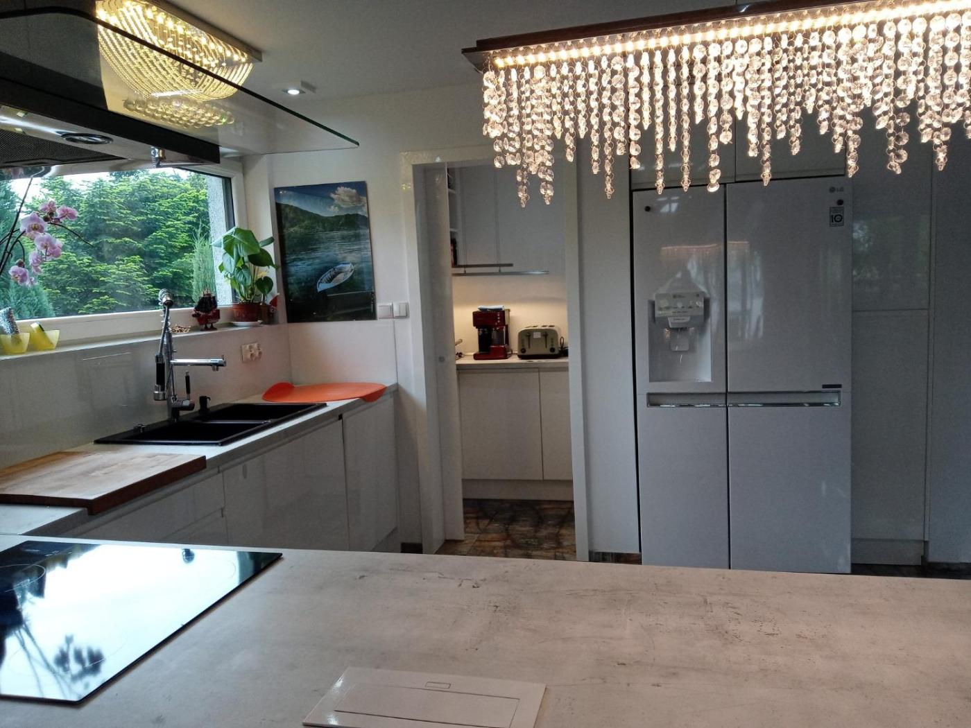 Dom wakacyjny. The fireplace is the standout feature of this holiday home. This spacious holiday home features 1 living room, 4 separate bedrooms and 2 bathrooms with a walk-in shower and free toiletries. Guests will find a refrigerator, a dishwasher, kitchenware and an oven in the well-fitted kitchen. The holiday home also comes with a barbecue. Boasting a terrace with lake views, this holiday home also features a washing machine and a flat-screen TV with streaming services. The unit has 6 beds. Dom wakacyjny - 10 osobowy. Powierzchnia pokoju ok.: 180 mkw.