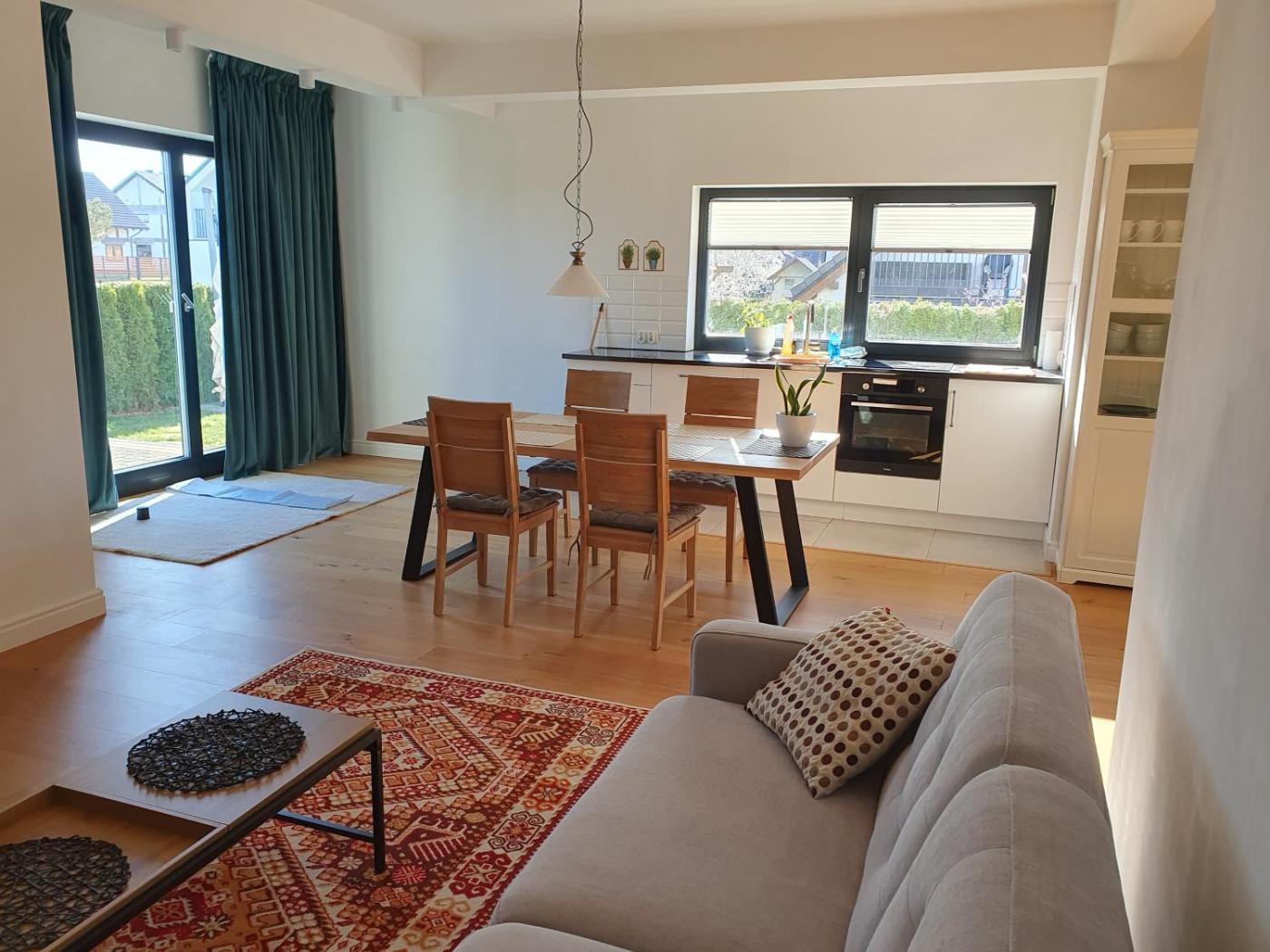 Dom z 3 sypialniami. The holiday homes kitchen is available for cooking and storing food. Guests can benefit from a terrace and garden views. The unit offers 3 beds. Dom wakacyjny - 6 osobowy. Powierzchnia pokoju ok.: 100 mkw.